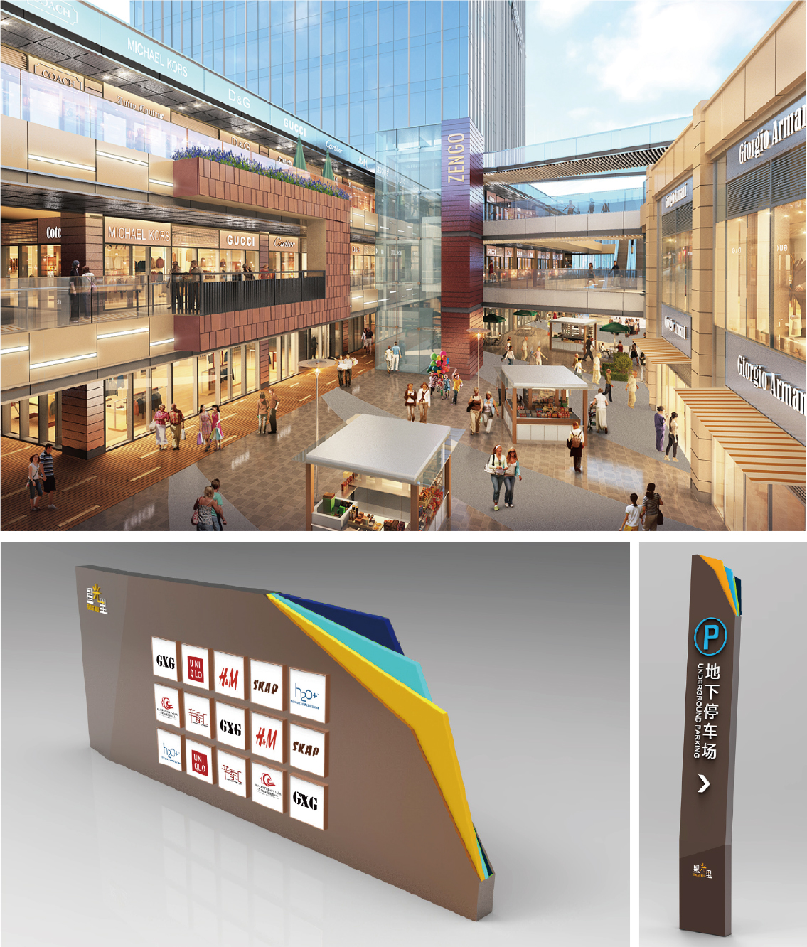 标识导视设计范围包括:室外标识商业内街标识、商业室内标识、办公楼室内标识、地下车库标识。